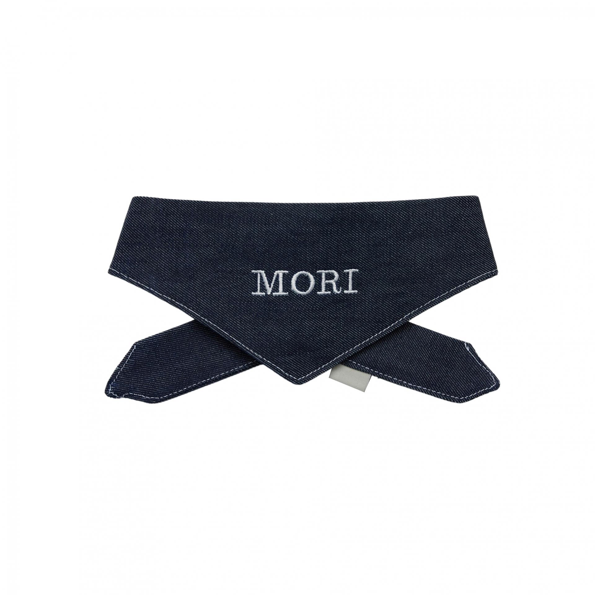 子犬の名前を刺繍してポイントとして着用するネーミングスカーフです。