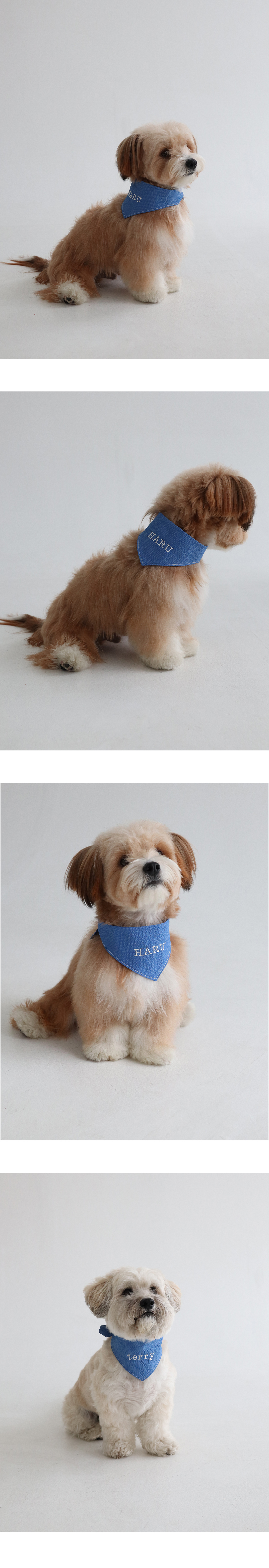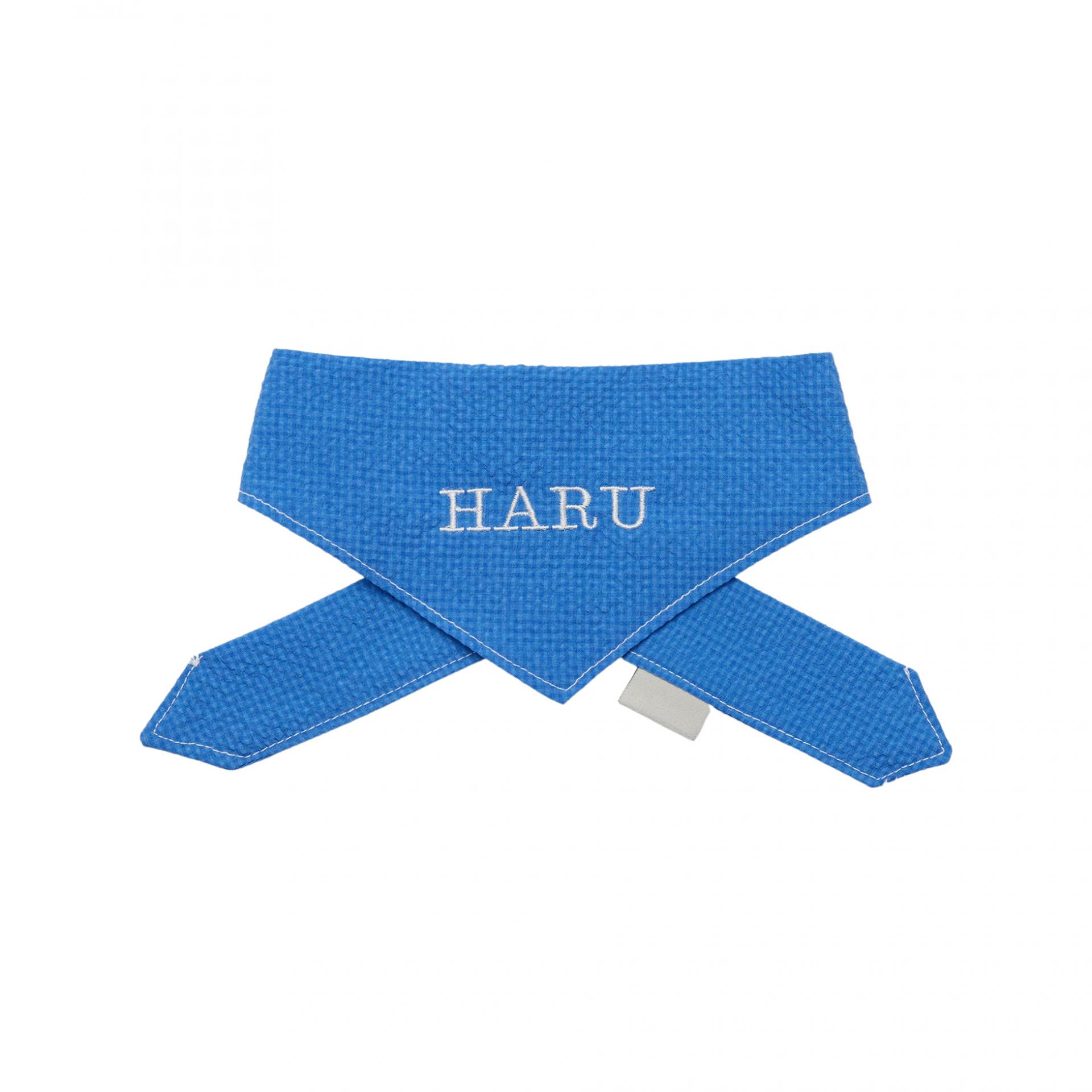 子犬の名前を刺繍してポイントとして着用するネーミングスカーフです。