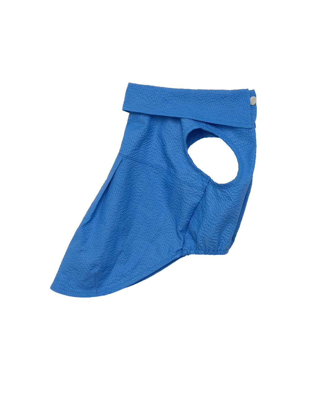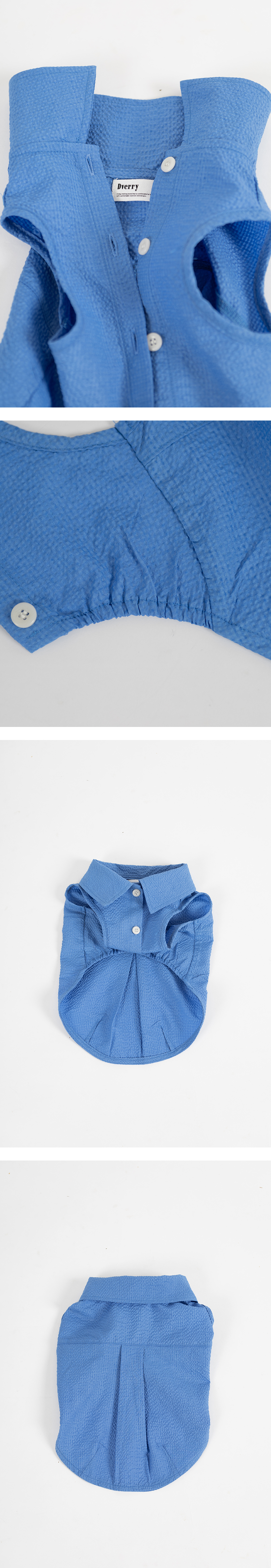 薄くて涼しいシアサッカー生地で作られたシャツです。伸縮性のない生地なので息苦しくないように製作されていますが、お腹の部分がバンディングで浮き上がることなく適切に着用することができます。