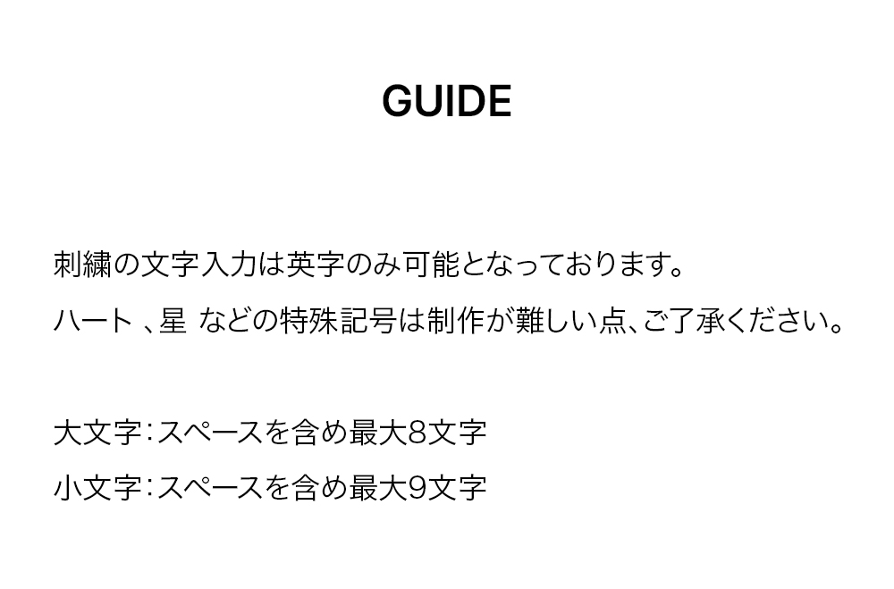 POLYESTER 100ポリエステルは耐久性が強いですが、吸湿性がなく、シワがつきにくく、形も変わりにくい素材です。 引いた時の強度がナイロンの次に高い繊維で、水に濡れても強度に変わりなく耐久性があります。3層の高密度ジャカードウェビングで国内工場で製織され、しわ防止のために樹脂加工作業を経ました。*** 刺繍大文字と小文字を区分した後、英文記入 / しない場合"X"記入