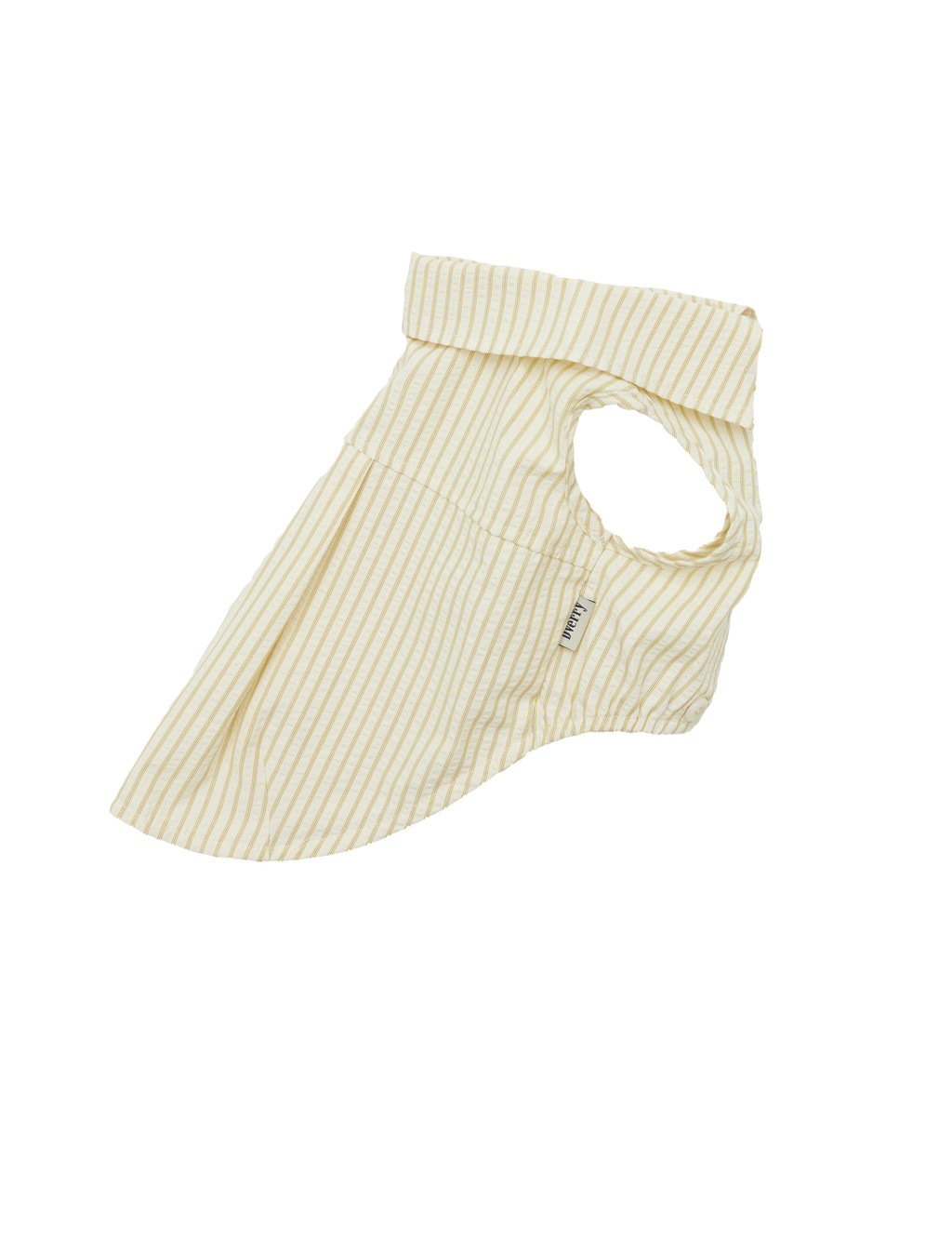 薄くて涼しいシアサッカー生地で作られたシャツです。伸縮性のない生地なので息苦しくないように製作されていますが、お腹の部分がバンディングで浮き上がることなく適切に着用することができます。