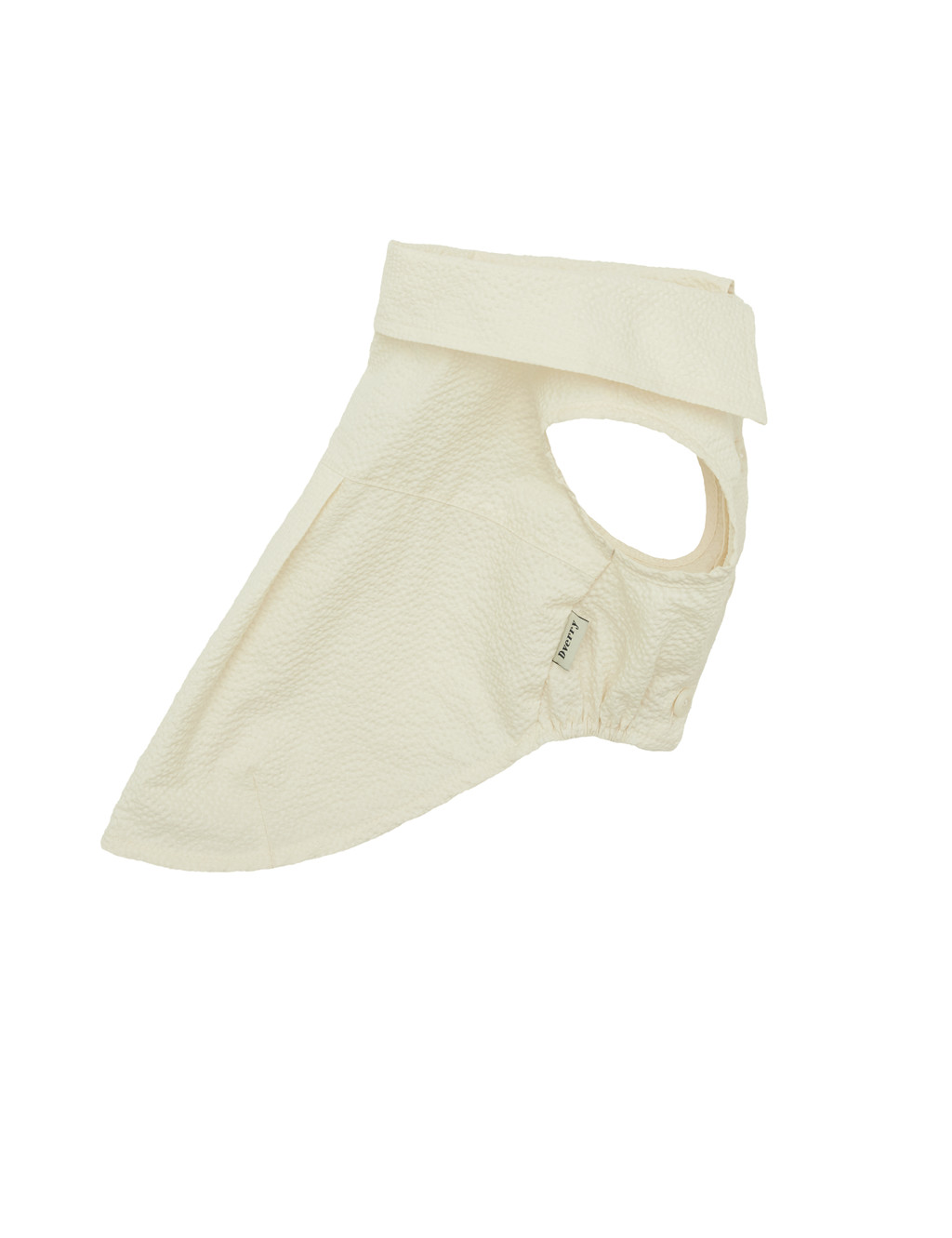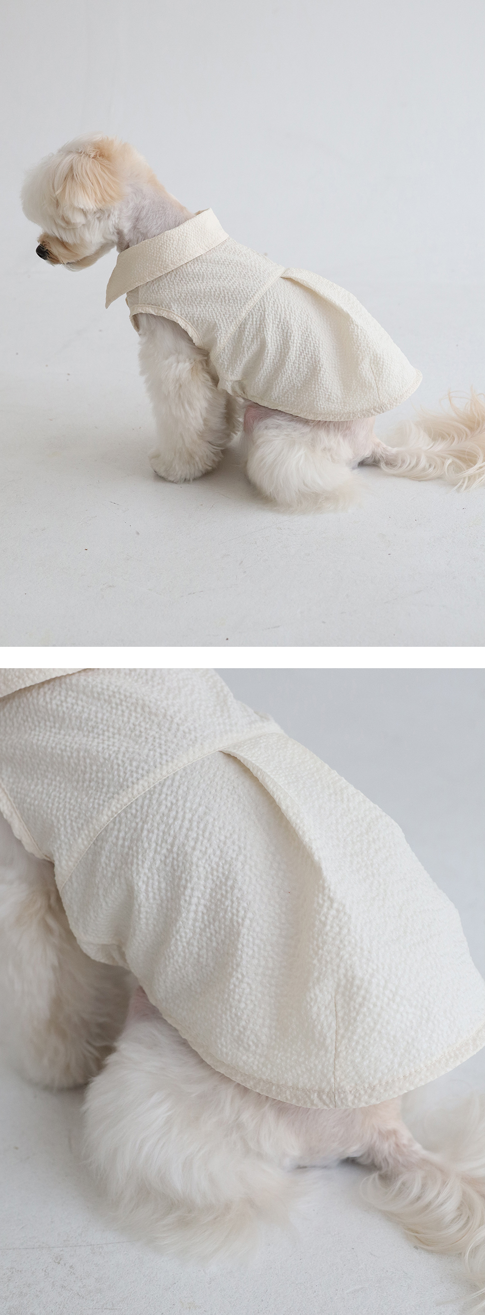 薄くて涼しいシアサッカー生地で作られたシャツです。伸縮性のない生地なので息苦しくないように製作されていますが、お腹の部分がバンディングで浮き上がることなく適切に着用することができます。