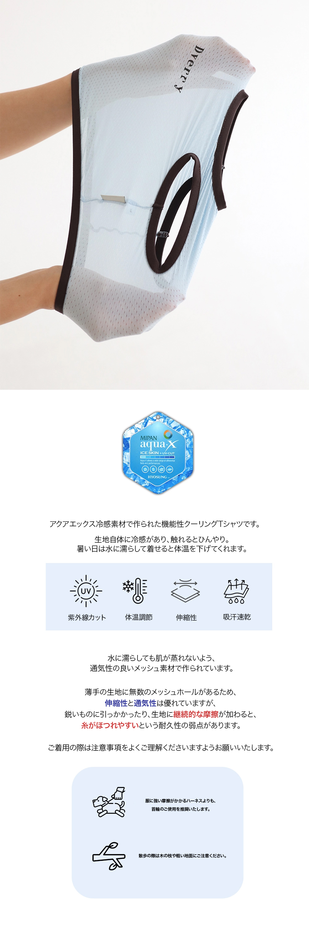 • UVカット、接触冷感機能性のアクアX生地で製作