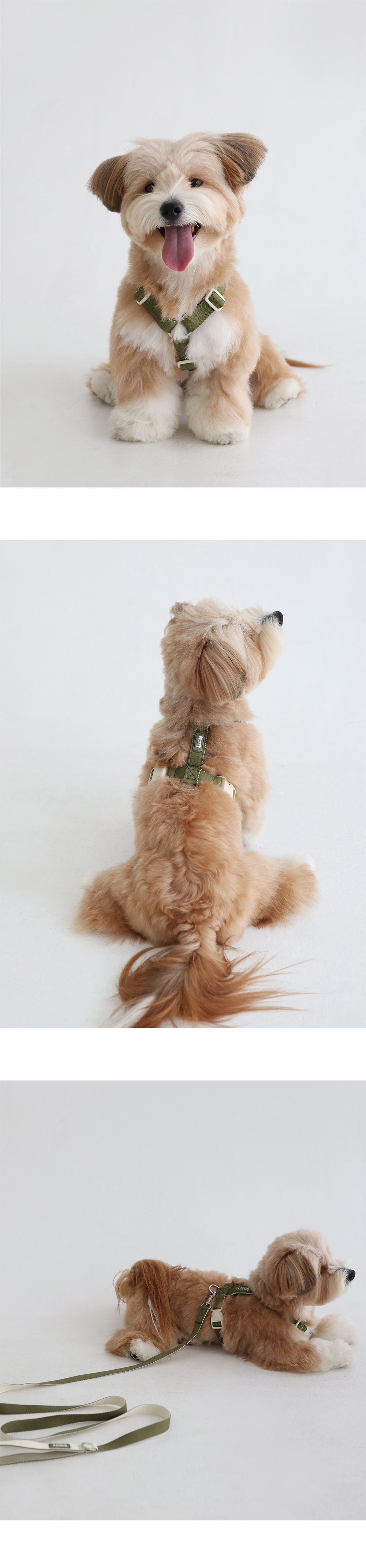 H型ハーネスは、頭だけ入れて胸から両側のバックルを締結する形式で、安全で着用が容易で、バックルと絞りを利用してサイズを自由に調節することができます。 特殊ミシンバテック(bartack)で縫製し、長く丈夫に使用できます。
